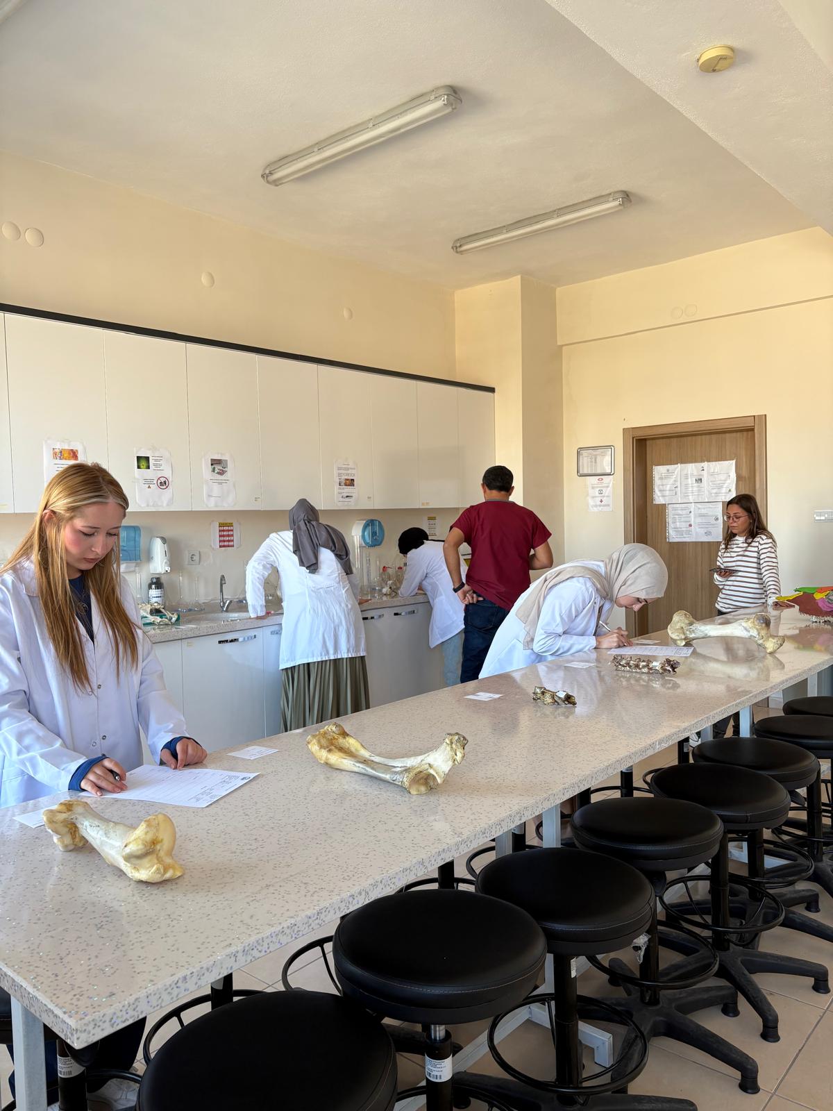 Temel Veteriner Anatomi dersinin quiz sınavı 19 Kasım 2025’te saat 13.10’da gerçekleştirildi. Sınavda her sorunun sonunda çalan zil ile öğrenciler bir sonraki kemiğe geçiş yaptı. Toplam 10 soru soruldu ve her soru için 1 dakika süre verildi. Öğrenciler, verilen kemiklerin Latince isimlerini ve bağlı oldukları sistemi yazarak sınavı tamamladı.