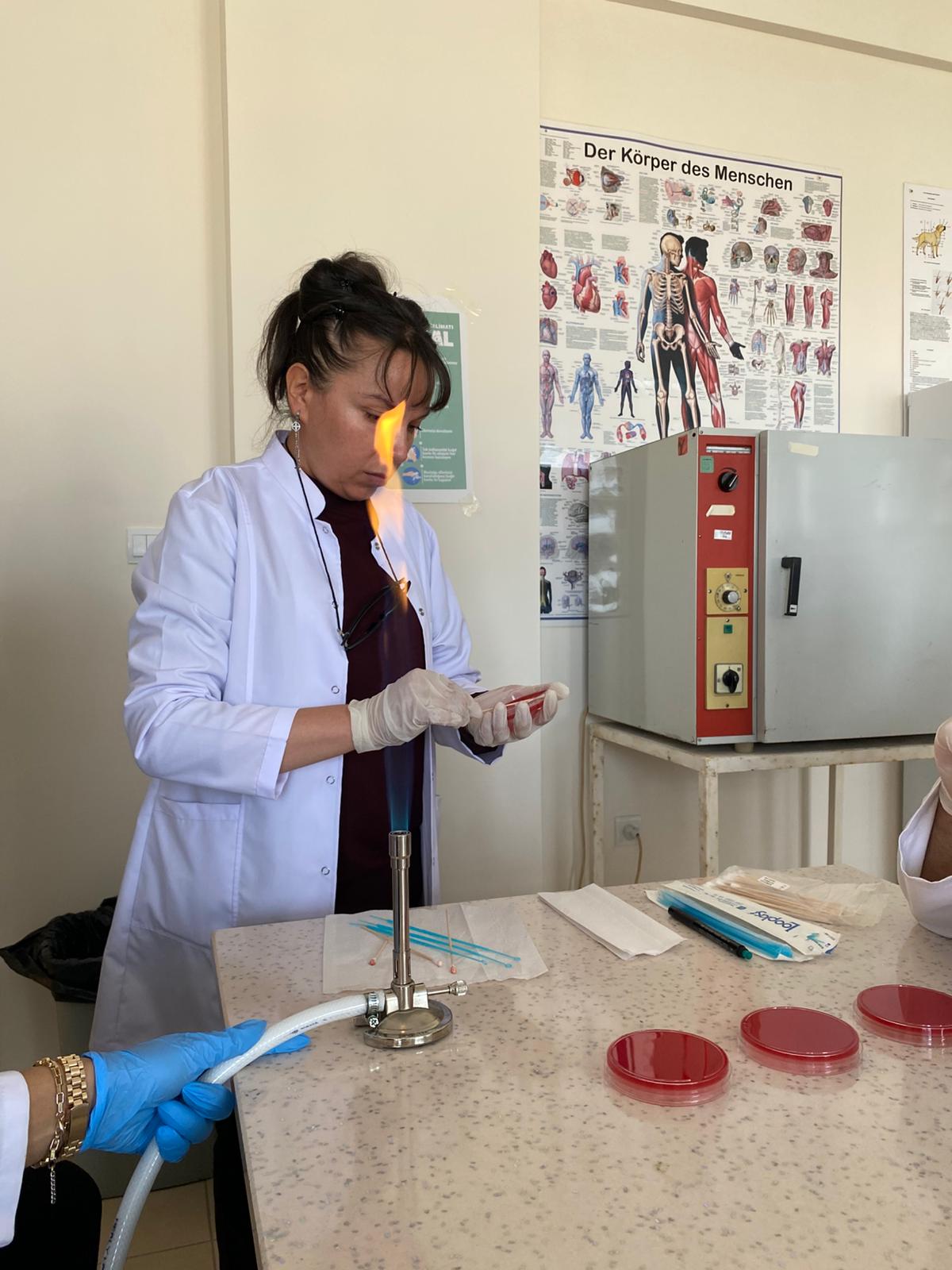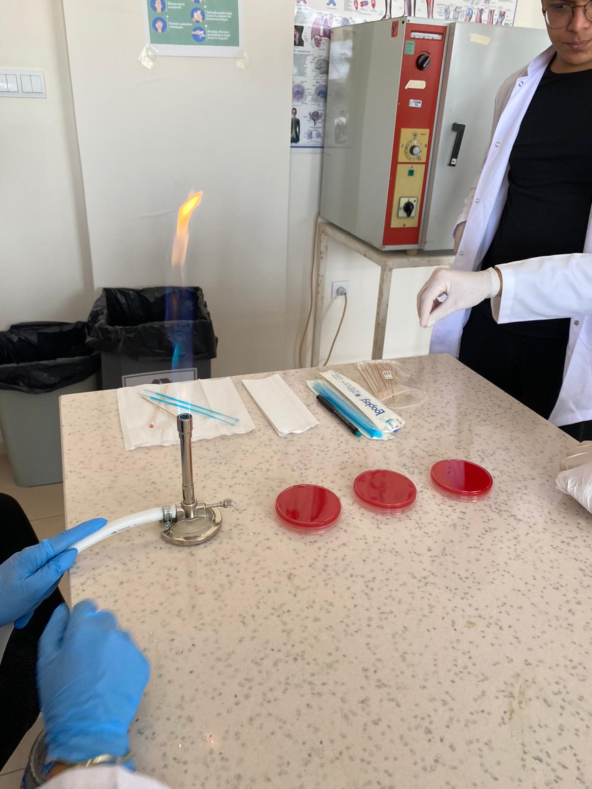 Uygulamada öğrencilere, örnek alma teknikleri, aseptik çalışma kuralları, ekim yöntemleri, besiyeri hazırlama ve kullanma esasları ile laboratuvar güvenliği hakkında ayrıntılı bilgi verildi. Öğrenciler, ekim işlemlerinin tüm aşamalarını birebir gerçekleştirerek mesleki becerilerini geliştirdi. 🧤🧼✨