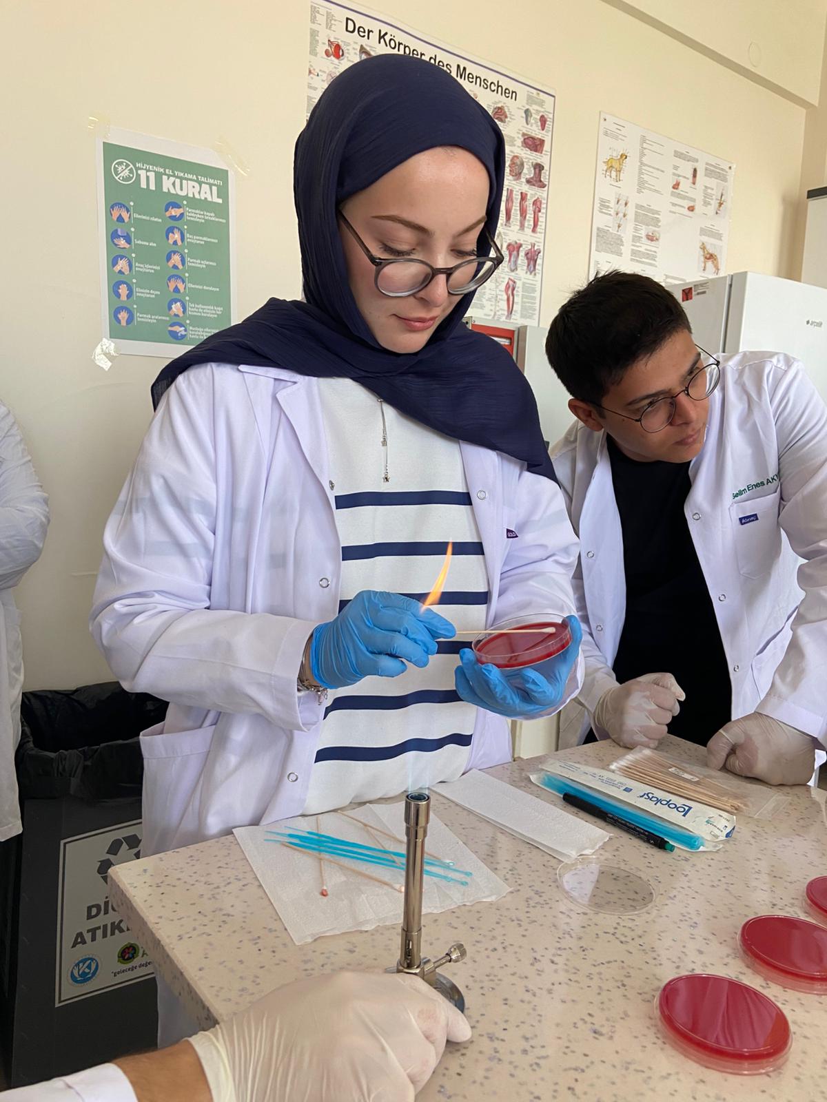 VETERİNER SAĞLIK TEKNİKERİ ADAYLARI MİKROBİYOLOJİ UYGULAMASINDA UYGULAMALI EĞİTİM GERÇEKLEŞTİRDİ 🧫🔬