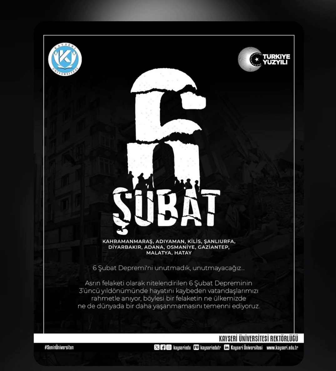 6 Şubat, hafızamızda silinmez bir iz, kalbimizde dinmeyen bir sızıdır. Ancak bu acı, dayanışmamızın ve yeniden ayağa kalkma irademizin de en güçlü dayanağıdır. Kayıplarımızın aziz hatırasına duyduğumuz saygıyla; bilimin rehberliğinde ve ortak aklın ışığında sorumluluklarımızı yerine getirmeye devam ediyoruz.