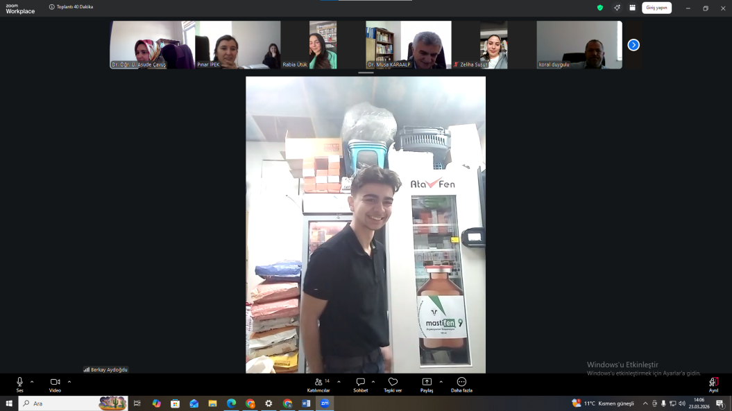 Toplantı, 23 Mart 2026, saat 14:00’te yapıldı. Öğrenciler, işletmede yürüttükleri faaliyetleri canlı olarak gösterirken, eğitim sürecinde dikkat etmeleri gereken konular danışman hocaları Doç. Dr. Musa Karaalp ve okul müdürümüz Öğr. Gör. Koral Duygulu’ nun da katılımıyla ele alındı.